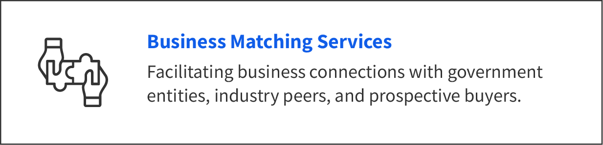 Business matching for connecting businesses with government entities, industry peers, and prospective buyers within your requested sector.