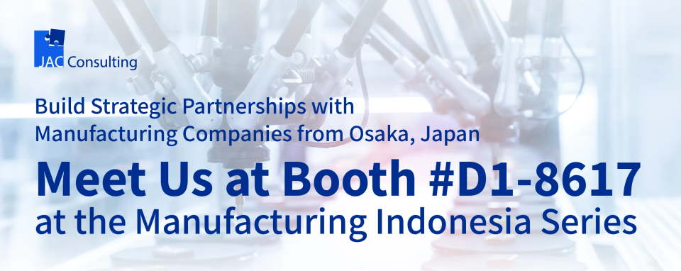 JAC Consulting, in collaboration with Japan Osaka and the Osaka Business Development Agency (OBDA), brings together seven manufacturers from Osaka at Manufacturing Indonesia Series.